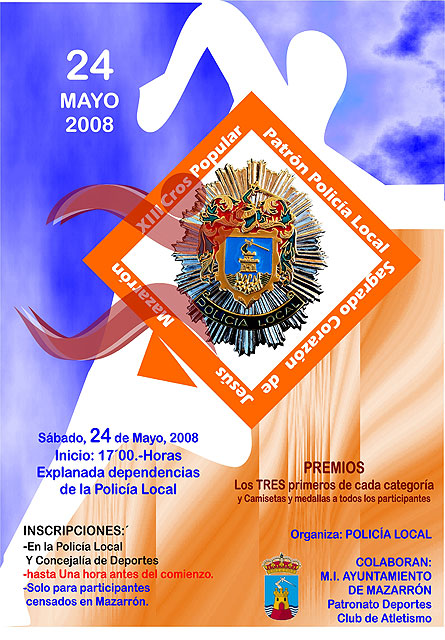 El próximo sábado 24 de mayo tendrá lugar la XIII Cross Popular, con motivo del Patrón de la Policía Local, Sagrado Corazón de Jesús. Este evento deportivo comenzará a las 17:00 horas desde la explanada de las dependencias de la Policía Local.