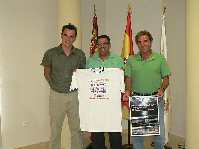Esta mañana el Alcalde de Mazarrón, Francisco Blaya, junto al Concejal de Deportes, Francisco Antonio Raja, y el organizador de la carrera, Casiano Navarro, ha presentado la décimo quinta edición de la ‘Carrera Contra la Droga’, que se desarrollará el próximo sábado 16 de agosto a las 20:00 h. en Bolnuevo.