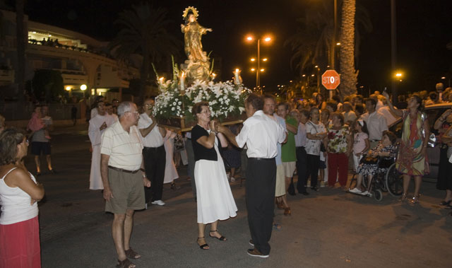 Hacia las nueve de la noche se inició la Misa en hornor a la Virgen y a continuación tuvo lugar la Procesión que salió desde la Ermita de La Isla y recorrió varias calles de la urbanización. Durante todo el recorrido los asistentes estuvieron acompañados por la Banda de Tambores y Cornetas de Mazarrón.