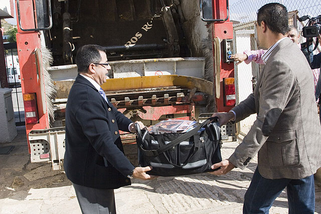 Tras el encuentro con los medios de comunicación, Francisco Blaya y Segundo Muñoz han iniciado la destrucción del material decomisado en los últimos meses. Entre los que se encontraban CD´S, DVD´S, perfumes, bolsos y ropa, entre otros elementos.