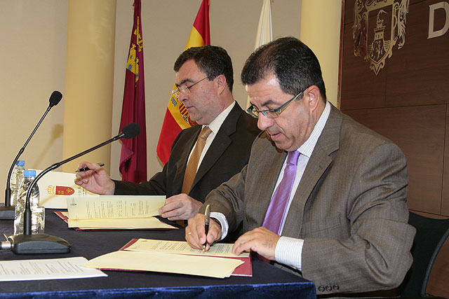 Esta mañana el Alcalde de Mazarrón, Francisco Blaya, y el Consejero de Obras Públicas, José Ballesta, han firmado un convenio para el acondicionamiento y la remodelación de la Plaza del Ayuntamiento.