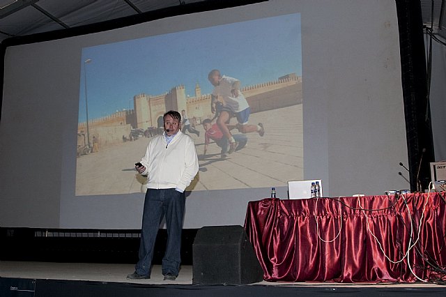Esta noche la programación de Fotogenio 2009 continuará con sesiones audiovisuales con la proyección de la Asociación Española de Fotógrafos de Naturaleza (Aefona), Eduardo Blanco, Caja Mediterráneo: Obra Social, Asociación Punto de Enfoque de la Región de Murcia y la web miradanatural.es. Seguidamente iniciarán las “Sesiones Golfas” en la que todos los participantes de Fotogenio tienen la posibilidad de proyectar su porfolio en la pantalla gigante de la carpa principal.