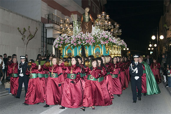 Mazarrón, 13-abril-2009.- En Puerto de Mazarrón, la noche de Jueves Santo brilló con luz propia gracias a la Procesión de Nuestro Padre Jesús Nazareno, en la que ciudadanos y turistas se han congregado en las calles de la zona costera para visionar el desfile procesional.