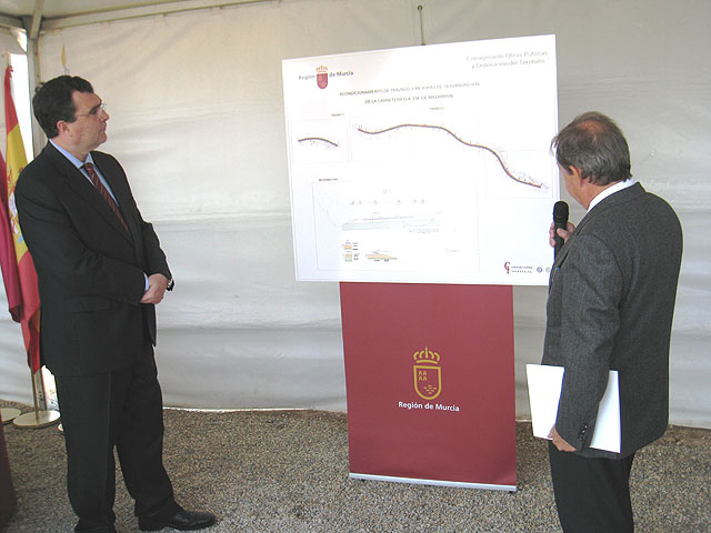 El consejero de Obras Públicas y Ordenación del Territorio, José Ballesta, acompañado del alcalde de Mazarrón, Francisco Blaya, puso hoy la primera piedra de las obras de la carretera RM-D4 que discurre por el municipio mazarronero. Las actuaciones prevén ensanchar la plataforma, que tendrá nueve metros, y reducir el radio de las curvas con el objetivo de incrementar la seguridad vial de los usuarios.