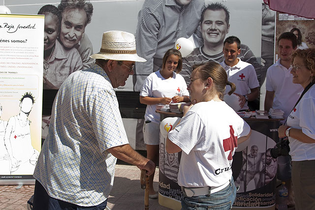 En el stand los voluntarios de Cruz Roja Española en Mazarrón, que rondan las cien personas, están ofreciendo información sobre este organismo que en la actualidad cuenta con más de medio millar de socios.
