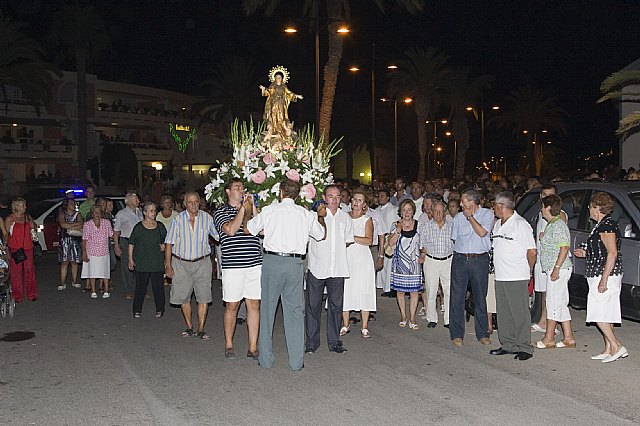 El viernes 15 de agosto hacia las nueve de la noche se inició la Misa en honor a la Virgen y a continuación tuvo lugar la Procesión que salió desde la Ermita de La Isla y recorrió varias calles de la urbanización Bahía. Durante todo el recorrido los asistentes estuvieron acompañados por una Banda de Tambores y Cornetas.