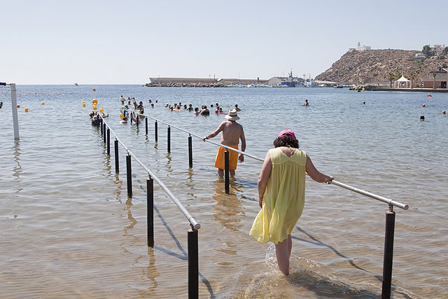 En la Playa Temática de Mayores, situada en el Paseo del Puerto, hay habilitada una zona para personas con discapacidad, acondicionada con pasarelas, asientos en el agua, sombras y silla de ruedas acuática.