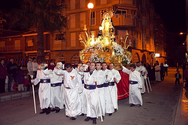 La procesión partió desde el Santuario de La Purísima pasando por la Plaza del Callao, la Avenida Constitución, Calle San Pascual, Calle La Vía, Calle Progreso, Calle del Pino, Calle del Pilar, Jardín de Santa Úrsula, Calle San Antonio, Plaza del Ayuntamiento, Calle Alfonso X, Calle Agustín Navarro hasta llegar al Santuario de La Purísima.