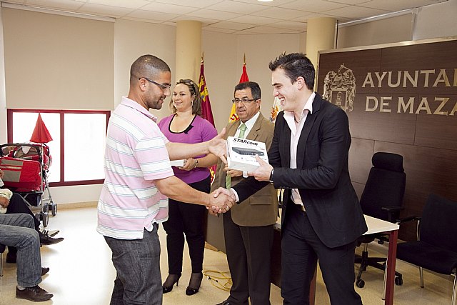 Esta mañana el Alcalde de Mazarrón, Francisco Blaya, acompañado por el Concejal de Nuevas Tecnologías, Francisco Antonio Raja, y la Concejala de Política Social, Yolanda Vivancos, ha entregado 32 aparatos de Televisión Digital Terrestre (TDT).