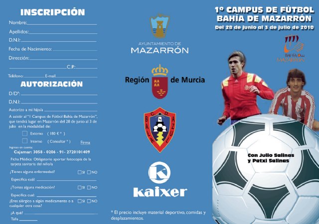 La oferta de actividades deportivas para los jóvenes mazarroneros se amplía este verano con la realización del 'I Campus de Fútbol Bahía de Mazarrón'.