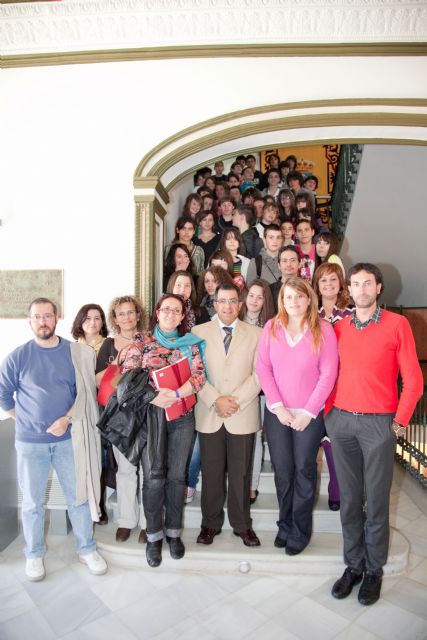 El Alcalde de Mazarrón, Francisco Blaya, acompañado por los ediles de Cultura, Fiestas e Infraestructuras, Alicia Jiménez, José Antonio Román y Luisa María Heredia, han recibido esta mañana a 39 alumnos y tres profesores franceses del centro Jules Ferry, quienes proceden de tres pueblos del país vecino, Cazouls, Maraussan y Maureilhan. Entre los asistentes también han estado presente una profesora y dos alumnas del IES Domingo Valdivieso de Mazarrón.