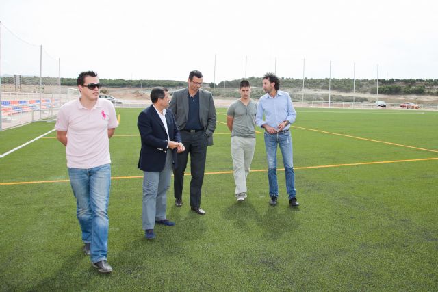 Esta mañana Antonio Peñalver, el director general de Deportes, junto a Francisco Blaya, candidato a la Alcaldía de Mazarrón, ha visitado los dos nuevos campos de césped artificial del municipio, ubicados en la Ciudad Deportiva.