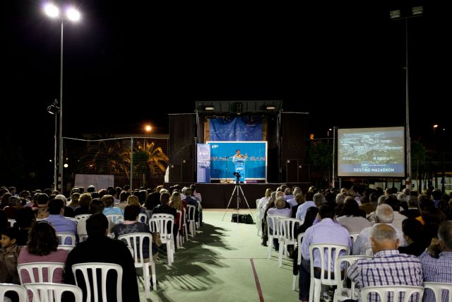 Esta noche más de medio millar de personas han arropado el mitin-fiesta del Partido Popular en Mazarrón, celebrado en el Complejo Deportivo del CEIP Ginés García.