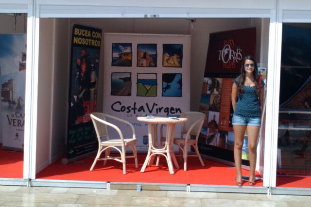 El stand "Bahía de Mazarrón" promociona diversos aspectos de nuestro municipio. En primer lugar se está promoviendo el turismo de sol y playa por medio de las calas vírgenes que podemos encontrar a partir de la playa del Rincón y hasta el límite de Lorca. Un display en el que se lee "Costa Virgen", muestra imágenes de algunos de los rincones más bellos de esta zona.
