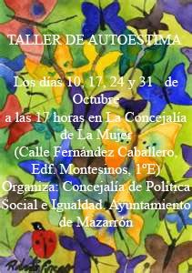 La concejalía de Política Social e Igualdad del Ayuntamiento de Mazarrón va a poner en marcha una nueva actividad dirigida a la mujer. Concretamente, el Centro de Atención Especializada para Mujeres Víctimas de Violencia de Género (CAVI) de Mazarrón ha programado para el mes de octubre un taller de autoestima que se desarrollará los días 10, 17, 24 y 31 del citado mes.