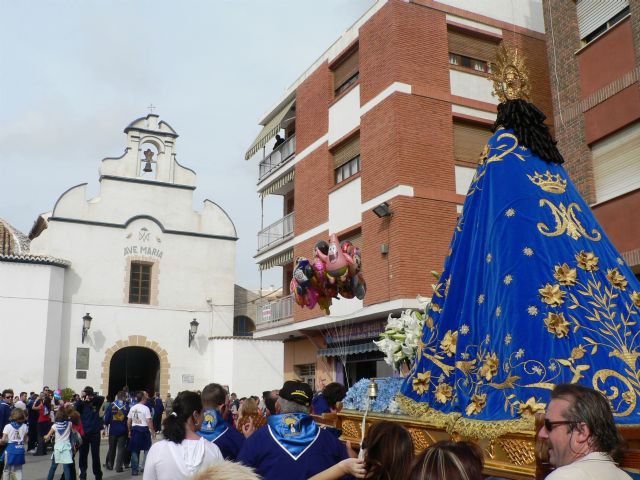 La imagen de la Purísima Concepción que se venera en la ermita de Bolnuevo llegó hoy a Mazarrón acompañada de un gran número de vecin@s que se sumaron a la, cada vez más numerosa, subida de la Virgen desde la playa hasta la capitalidad del municipio. La “Virgen del Milagro”, nombre con el que se conoce cariñosamente a esta imagen, salió puntual desde Bolnuevo para recorrer los 5 kilómetros que separan ambos núcleos poblacionales.