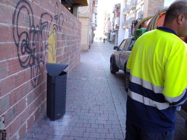 Servicios instala 51 nuevas papeleras en Puerto de Mazarrón