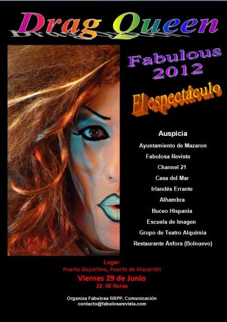Mañana viernes Mazarrón se suma a la conmemoración del Orgullo LGTB con la celebración de la gala de elección "Drag Queen Fabulous 2012" que esta mañana ha sido presentada por la concejala de Turismo, Cultura y Educación, María Celeste Soria, quien ha estado acompañada de la organizadora del espectáculo, Annie Espinoza, y del director del grupo de teatro "Alquimia" del colegio "Siglo XXI", Juan González, que ofrecerán su apoyo técnico y teatral a la celebración de esta gala.