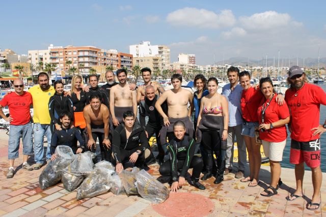 Este pasado sábado alrededor de un centenar de personas, entre buceadores, niños y vecinos, se dieron cita en el Puerto Deportivo de Puerto de Mazarrón para participar en la XVIII edición de Limpieza de Fondos Marinos y Playas de la Bahía de Mazarrón. La exitosa jornada de este año ha sido organizada conjuntamente por el Ayuntamiento de Mazarrón y los centros de buceo "Buceo Hispania", Centro de Buceo del Sureste "Bachisub", el Centro Escuela de Buceo "Amigos del Azul" y "Rivemar". También han participado el Club de Pesca de Puerto de Mazarrón, que ayudó en la limpieza de la playa de Bolnuevo, y la empresa Construcciones "Francisco Coy", que donó los refrescos que se compartieron en la comida organizada por la concejalía de Medio Ambiente. Cruz Roja Mazarrón y sus voluntarios controlaron en todo momento que la cita se desarrollara correctamente.