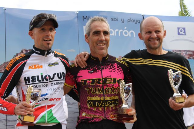 Más de 250 ciclistas han tomado salida esta mañana desde la plaza de las Comunidades Autónomas de Puerto de Mazarrón para participar en la XVII Marcha Mountain Bike "Bahía de Mazarrón" que este año ha cambiado su recorrido, volviéndose más interesante y atractiva para los participantes pero también algo más dura y con más cuestas que en ediciones anteriores. El campeón absoluto de la prueba de este año, organizada por el el Club Ciclista "9 y ½" con la colaboración del Ayuntamiento de Mazarrón, ha sido Tomás Ortega Bustos quien ha estado acompañado en el podio por José Arcas Navarro y Fernando Piñero Gallego, segundo y tercer clasificado respectivamente.