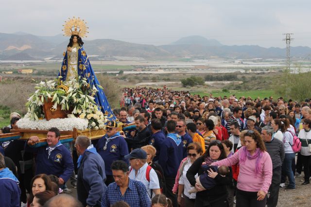La romería del Milagro ha reunido un año más a miles de personas que en una bella mañana han acompañado a la imagen de la Purísima Concepción hasta la ermita de Bolnuevo. Los miles de romeros, tanto a pie como a caballo y en diversos carruajes, han recorrido los 5 kilómetros que separan Mazarrón del popular poblado de pescadores donde, a su llegada, han podido degustar la tradicional moraga de sardinas que la Comisión de Fiestas de Bolnuevo ha repartido entre los asistentes.