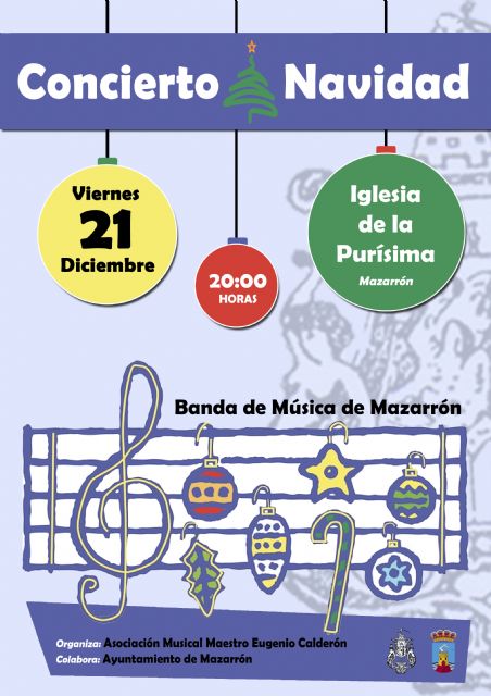 El próximo viernes 21 de diciembre, la Banda de Música de la Asociación Musical "Maestro Eugenio Calderón" ofrecerá su tradicional Concierto de Navidad. Esta nueva cita con la música tendrá lugar en el Santuario de La Purísima de Mazarrón a partir de las 20 horas.