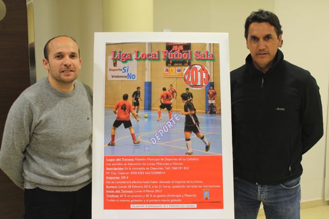 La Liga Local de Fútbol Sala 2013 se iniciará el lunes 4 de marzo del presente año y se desarrollará en el pabellón de deportes "La Cañadica" de Mazarrón. Así lo dio a conocer el concejal de Deportes del Ayuntamiento, Andrés Valera, quien en la presentación de este consolidado torneo estuvo acompañado por Cesar Campos, técnico del área de Deportes del consistorio. La inscripción para el torneo ya se encuentra abierta y se cerrará el 28 de febrero, día en el que se realizará el sorteo de enfrentamientos.