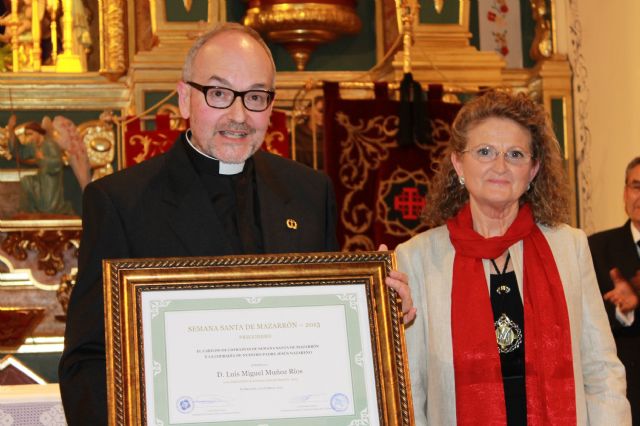 El pasado sábado 23 de marzo, el Santuario de La Purísima en Mazarrón acogió el acto del pregón de la Semana Santa de este año y la entrega del reconocimiento "Nazareno del Año 2013". Dicha lectura corrió a cargo de Luis Miguel Muñoz Ríos, quien fuese sacerdote de la parroquia de San Andrés Apóstol y San Antonio de Padua entre los años 1991 y 1995. Al acto asistió el Alcalde de Mazarrón, Ginés Campillo, el actual sacerdote de la citada parroquia, Julio Romero, los presidentes de los Cabildos de Cofradías de Semana Santa de Mazarrón y Puerto, Cecilia Morales y Francisco Muñoz, además de diversos miembros del Equipo de Gobierno y representantes de las cofradías de Semana Santa de Mazarrón y Puerto.
