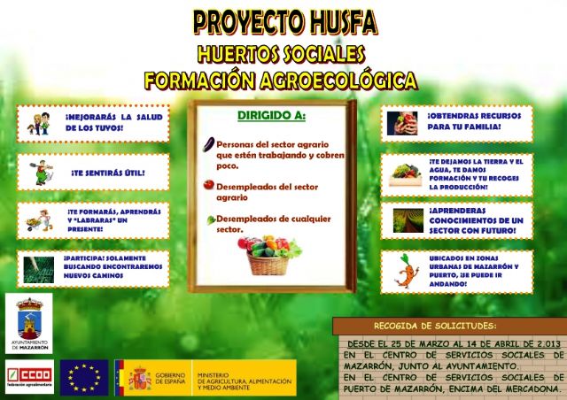 El proyecto, que cuenta con financiación de la Unión Europea y está promovida por el ministerio de Agricultura, Alimentación y Medio Ambiente, tiene que cubrir unos requisitos impuestos por Bruselas para que a él accedan personas que están dados de alta en el Régimen Especial Agrario. Aun así, "la propuesta está abierta a todas aquellas familias que estén pasando por momentos de dificultad ante la falta de un empleo", ha indicado Javier Díaz, quien ha llamado a inscribirse a las mismas "para crear un observatorio y tener así una visión general de la gente que estaría dispuesta a participar en el proyecto".