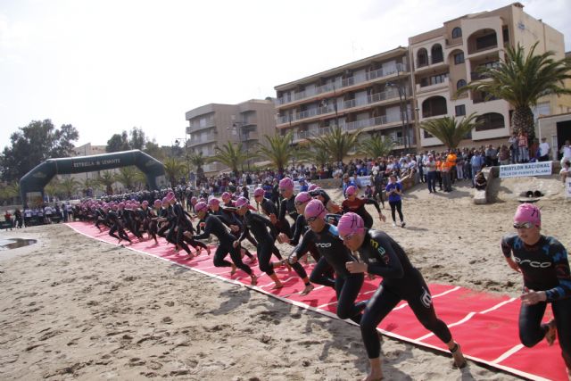 El pasado sábado se celebró el 24° Triatlón Nacional "Villa de Fuente Álamo" cuya salida tuvo lugar, como ya es tradicional, desde la playa del Rihuete en Puerto de Mazarrón. Los encargados de dar el bocinazo de salida de las diferentes categorías fueron la Alcaldesa de Fuente Álamo, María Antonia Conesa, el Alcalde de Mazarrón, Ginés Campillo, los concejales de Deportes de ambos municipios, Juan Fulgencio López y Andrés Valera, y la edil de Turismo de Mazarrón, María Celeste Soria.