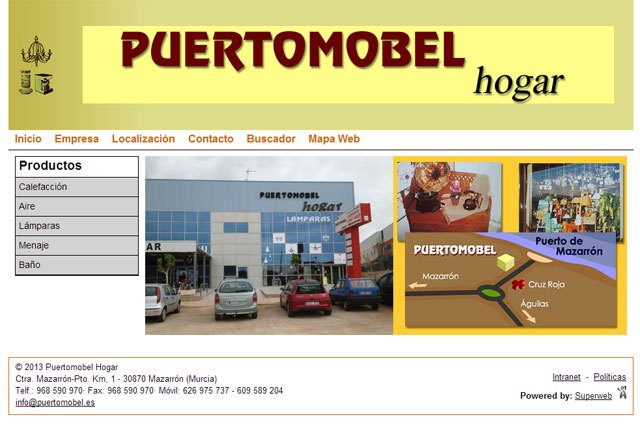 La página web de PuertoMobel Hogar ha sido desarrollada con “Superweb Pack Catálogo”