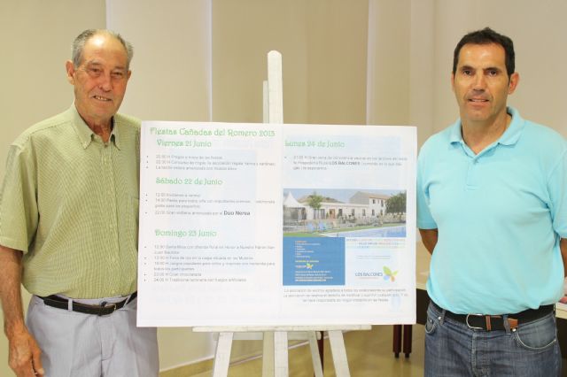 La pedanía de Cañadas del Romero se encuentra ya preparada para celebrar sus fiestas patronales en honor a San Juan Bautista que se celebran desde este viernes 21 de junio hasta el próximo lunes 24. La programación festera fue presentada ayer por el concejal de Festejos, Isidro Coy, y el alcalde Pedáneo, Antonio Ureña. Los actos comienzan a las 22 horas de este viernes con la lectura del pregón de este año cuyo protagonista aun no ha sido desvelado. Una vez que finalice el pregón habrá música disco para amenizar el tradicional concurso de migas.
