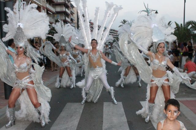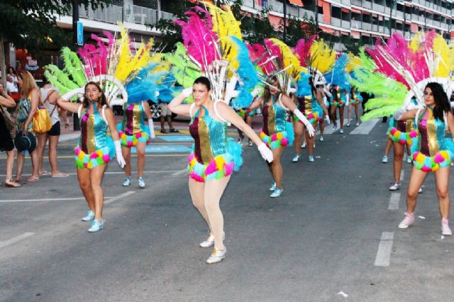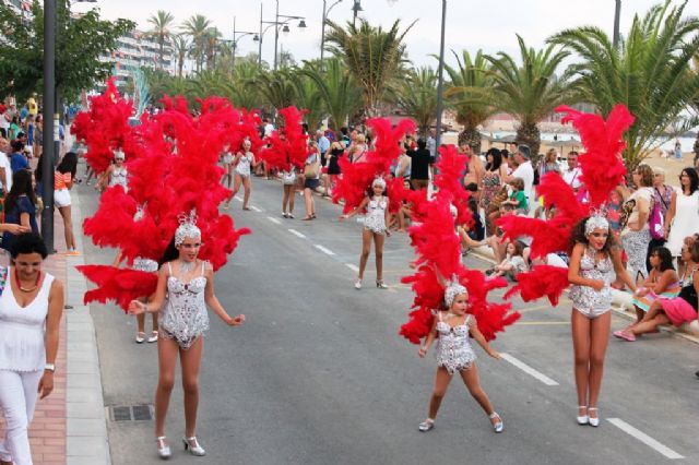 Miles de personas disfrutaron este pasado sábado del desfile del Carnaval de Verano que por primera vez se ha llevado a cabo con gran éxito. 17 comparsas, 8 locales y 9 foráneas, recorrieron Puerto de Mazarrón desde el paseo del Rihuete hasta la plaza del Muelle. Un recorrido en el que la numerosísima gente congregada para la ocasión agradeció la apuesta de la concejalía de Festejos del Ayuntamiento de Mazarrón para impulsar la actividad turística que se está promoviendo desde el consistorio.