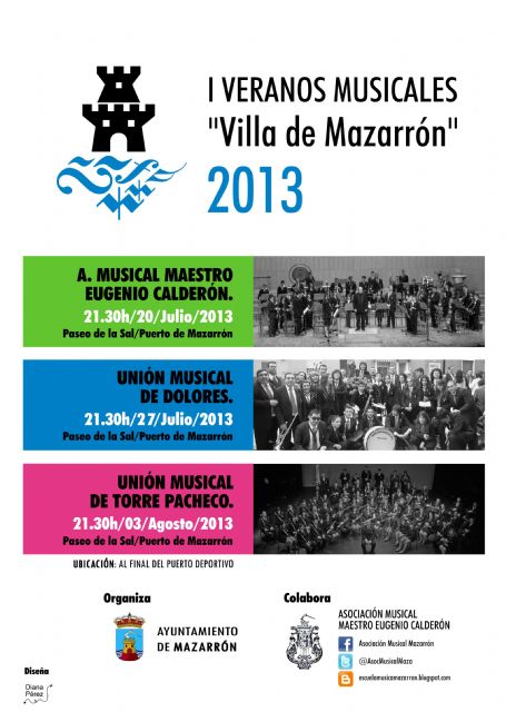 Paqui Ureña explicó que "se trata de una iniciativa que viene a consolidar los conciertos al aire libre que ya hemos realizado alguna vez en el paseo del Puerto y que han tenido una gran acogida por parte del público". La presidenta añadió que "para identificar este ciclo de 3 conciertos hemos encargado el diseño de un logo, que ha sido realizado por Diana Pérez Iborra". Además de la actuación de la banda mazarronera, están previstas las actuaciones de la "Unión Musical de Dolores" de Alicante el sábado 27 de julio y de la "Unión Musical de Torre Pacheco" el sábado 3 de agosto. Todos los conciertos son gratuitos y tendrán lugar a partir de las 21:30 horas en el paseo de La Sal.
