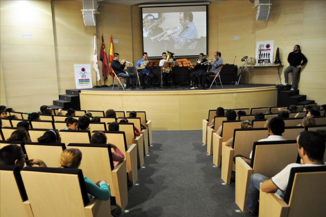 A lo largo de la mañana grupos de alumnos y alumnas de primaria y secundaria de once centros educativos de Mazarrón tuvieron la oportunidad de disfrutar de un divertido concierto en el que aprendieron de forma práctica conceptos básicos como el timbre o la diferencia entre grave y agudo; pudieron ver cómo eran las trompetas o las trompas hace medio siglo e incluso escuchar cómo sonaban, y aprender muchas cosas sobre los instrumentos de viento metal, desde las partes de que se compone cada instrumento y su función, hasta cómo respirar o hacer vibrar los labios para que suene el instrumento.