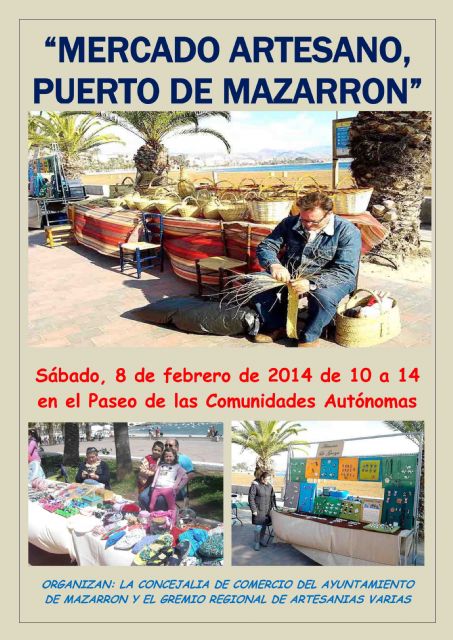 Este sábado 8 de febrero tendrá lugar una nueva edición del 'Mercado Artesano' que organiza el Gremio Regional de Artesanías Varias y la concejalía de Comercio del Ayuntamiento de Mazarrón. Como viene siendo habitual, la plaza de las Comunidades Autónomas de Puerto de Mazarrón será el lugar que acogerá este mercado que se celebrará entre las 10 y las 14 horas.