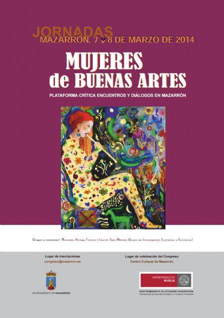 La profesora Leonor Sáez ha explicado que "se trata de hablar de la mujer no sólo en el mundo del Arte, sino también en el 'Arte de Vivir' y a lo largo de la Historia desde la Grecia Clásica hasta el momento actual". Serán decenas de profesores los que hablen de los más diversos temas llegados, además de la UMU, desde las universidades de Génova, Sevilla, la UNED de Madrid y de 'La Sapienza' de Roma. El precio del congreso es de 20 euros y en los próximos días se abrirá el plazo de inscripción que se realizará a través de la dirección de correo electrónico congreso@mazarron.es y que tendrá un espacio exclusivo en el banner principal de la web municipal www.mazarron.es, donde se recogerá también en los próximos días el programa completo y ficha de inscripción.
