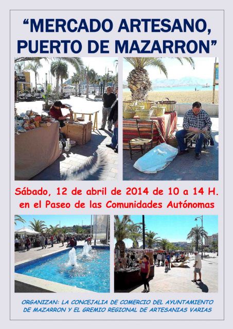 La concejalía de Comercio del Ayuntamiento de Mazarrón y el Gremio Regional de Artesanías Varias celebran este sábado 12 de abril, una nueva edición del 'Mercado Artesano de Puerto de Mazarrón', el cual se realiza todos los segundos sábados de cada mes. La plaza de las Comunidades Autónomas del Paseo Marítimo acoge de 10 a 14 horas esta iniciativa, con el fin de ofrecer a propios y extranjeros que visitan la costa murciana la artesanía más genuina que se realiza en la Región de Murcia.