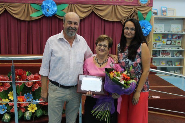 Durante este acto festivo se procedió la entrega de la placa con la que se homenajea al Mayor del Año que en esta ocasión recayó en Vicenta Pérez "La minuta" por su contribución diaria en las labores que viene organizando en el Centro de Día.