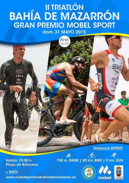 El próximo domingo 31 de mayo, Mazarrón volverá a acoger una cita deportiva de gran calado. Más de 250 deportistas participarán en la segunda edición del Triatlón Bahía de Mazarrón que organizan el Club Deportivo Bahía de Mazarrón y la Concejalía de Deportes del Ayuntamiento. La salida está prevista en la Playa de Bolnuevo a las 10 de la mañana. Los participantes recorrerán 750 metros a nado. Seguidamente, y desde el punto de boxes situado en la explanada de las Gredas, iniciarán un circuito en bicicleta de 20 kilómetros bordeando la Sierra de las Moreras en dirección Mazarrón. Tras completar la prueba ciclista, terminarán corriendo en el Paseo de Bolnuevo completando 5 kilómetros en total.