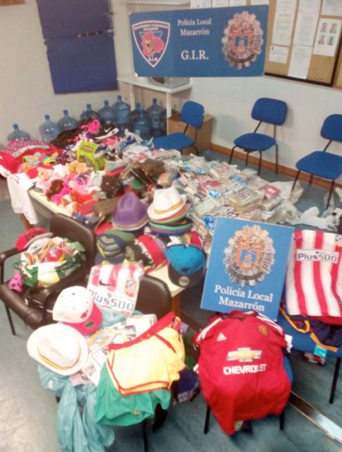La Policía Local de Mazarrón puso en marcha el pasado jueves 30 de julio un dispositivo especial que logró decomisar más de 1.400 artículos de venta ambulante ilegal en el Paseo Marítimo de Puerto de Mazarrón.