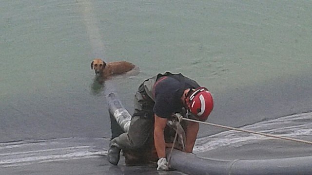 Un cabo y 2 bomberos del Consorcio de Extinción de Incendios y Salvamento de la Región de Murcia, con un vehículo y pertenecientes al parque de Mazarrón,  han rescatado esta mañana a 2 perros que habían caído a una balsa, al lado de la carretera de El Paretón (Totana), junto a paneles solares. Hasta el lugar también se desplazó una patrulla de la Guardia Civil.