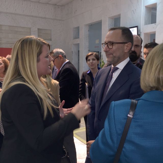 Alicia Jiménez aprovechó el encuentro para detallarle al embajador estadounidense las cualidades del tejido empresarial de Mazarrón y le incidió en el carácter potencial y la calidad de empresas como las hortofrutícolas que buscan ampliar mercados para exportar sus productos.