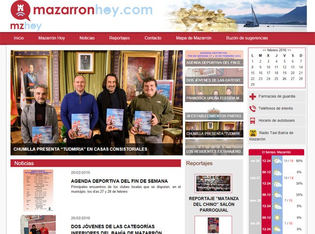 Nace "Mazarrón Hoy" un nuevo portal para encontrar la actividad diaria del municipio de Mazarrón. En el nuevo portal podrás encontrar noticias, reportajes fotográficos, fiestas, eventos, información de interés, farmacias de guardia, actos institucionales, pedanías, playas, monumentos, historia, entrevistas...