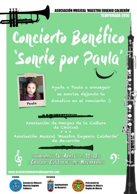 Desde la Asociación Musical informan que los donativos que recauden durante el concierto serán aportados a la iniciativa "Sonríe por Paula". La causa benéfica de este evento fue aprobada de forma unánime durante la última asamblea de socios. En el lugar del concierto se dispondrá de una urna para recoger los donativos de quienes asistan. La recaudación contribuirá a sufragar los gastos de operación que requiere Paula Valdivia, niña mazarronera afectada por la enfermedad rara, síndrome de Moebius.