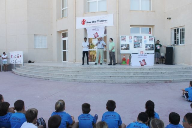 Las niñas y niños desde guardería hasta 4° de la ESO del colegio siglo XXI de Puerto de Mazarrón han participado este viernes en la IX Carrera y Acuatlón Solidarios a beneficio de "Save the children". Antes de la prueba han recibido la noticia del nombramiento del colegio como embajador de esta ONG, distinción que compartirá con otros cinco centros educativos de la Región de Murcia.
