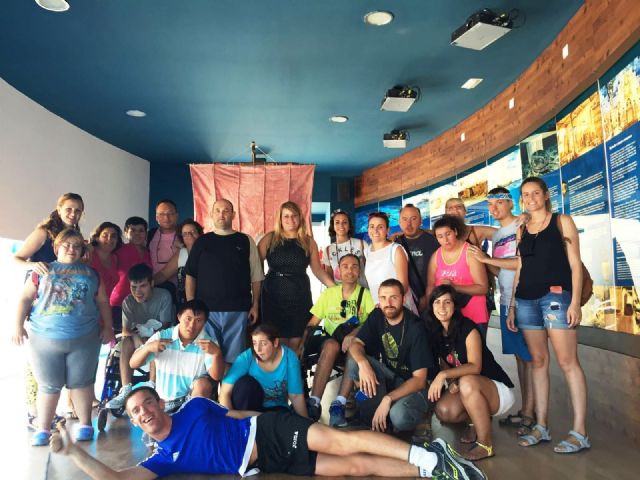 La Asociación de Discapacitados Prometeo de Torre Pacheco, visita estos días Mazarrón (del 27 de julio al 3 de agosto), La alcaldesa, Alicia Jiménez, junto a la concejal de Política Social, Laura Ortiz,, han querido acompañar a monitores y usuarios en una de sus excursiones realizadas a la Factoría Romana de Salazones y al Centro de Interpretación del Barco Fenicio.