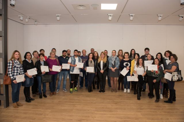La alcaldesa de Mazarrón, Alicia Jiménez y la concejal de Empleo, María Ángeles Román, han entregado este martes los diplomas correspondientes a los cursos impartidos por el Centro de Cualificación Turística. Con ello se cierra la agenda de actuaciones formativas desarrolladas en 2016 desde el Centro de Iniciativas Municipales de Empleo (CIME), dependiente de la Concejalía de Empleo, Formación y Desarrollo Local.