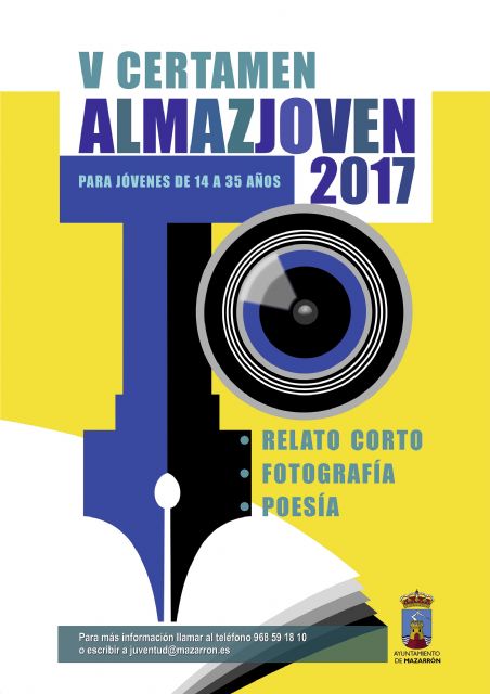 La Concejalía de Juventud del Ayuntamiento de Mazarrón ha convocado el V Certamen Artístico "Almazjoven", una iniciativa con la que se quiere apoyar e incentivar a los jóvenes creadores del municipio. Las modalidades del certamen son relato corto, poesía y fotografía, teniendo todas ellas a Mazarrón como núcleo temático. Los participantes basarán sus creaciones en el municipio, su historia, sus paisajes y todo lo relacionado con la villa.