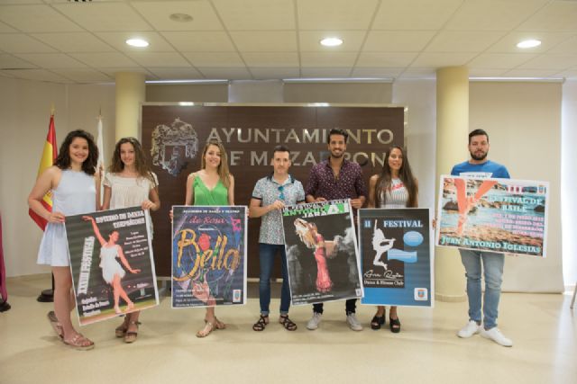 Las escuelas de baile del municipio realizarán sus festivales de verano en la Plaza de las Comunidades Autónomas del Paseo Marítimo de Puerto de Mazarrón durante tres fines de semana. Integrantes y responsables de de las cinco academia han presentado este jueves la programación de actuaciones con la que tratarán de plasmar los distintos estilos de baile así como el objetivo principal de fomentar esta actividad en el municipio.